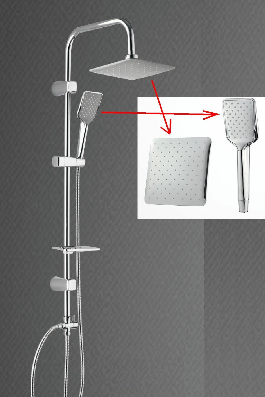| Υλικό | Το τοπ επικεφαλής ντους & το ντους χεριών είναι πλαστικό ABS με το χρώμιο. |